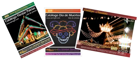 Solicite nuestros catálogos de Fiestas Partías, Navidad, Día de Muertos y demás celebraciones, descubra nuestra amplia colección de nuestras mejores ideas y una fuente de inspiración para nuestros clientes, con cientos de propuestas ya resueltas para Fachadas, Puentes, Monumentos, Calles, Postes y figuras de piso.